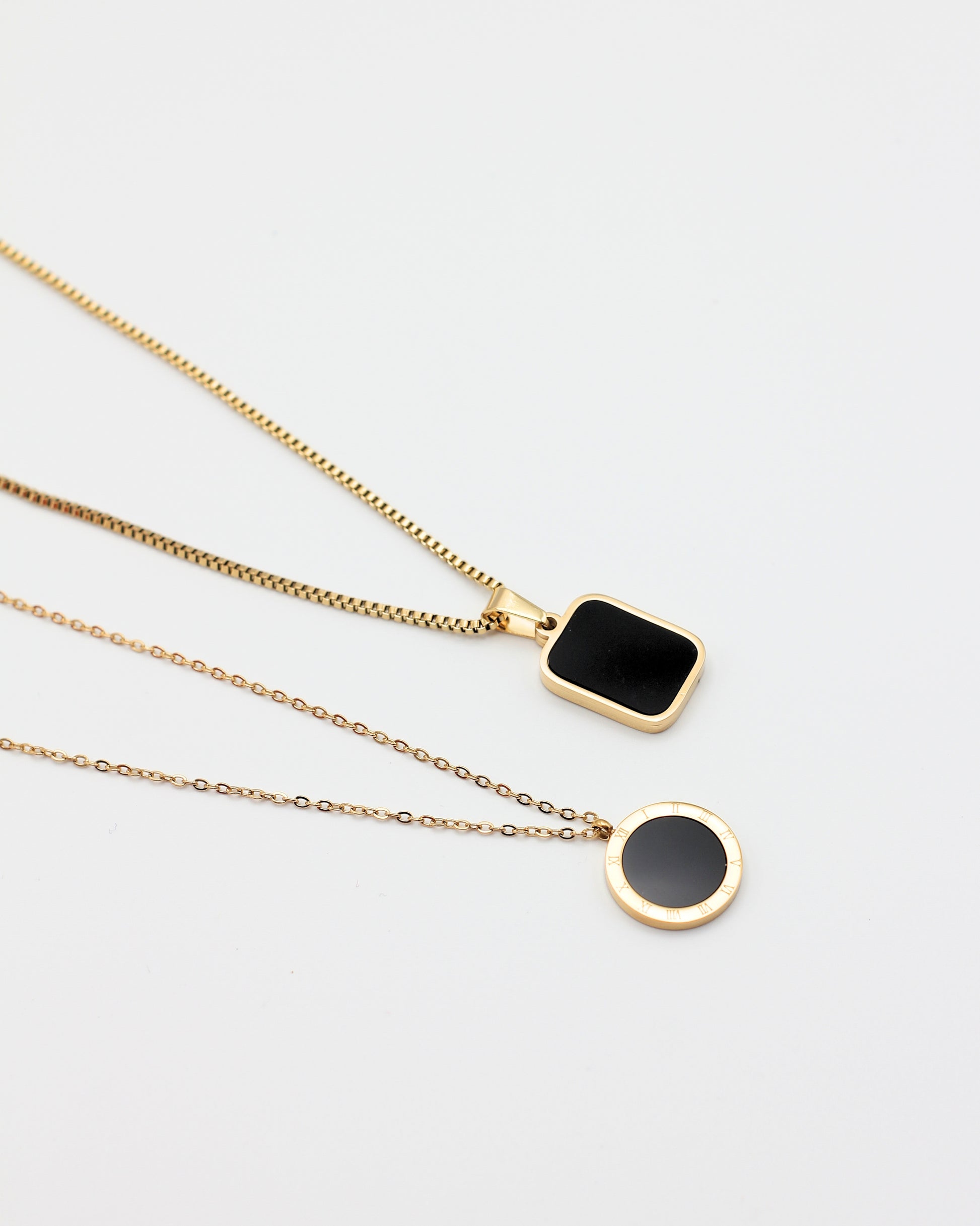 Includes 1 Round Black Necklace & 1 Double side square necklace(other side is white)